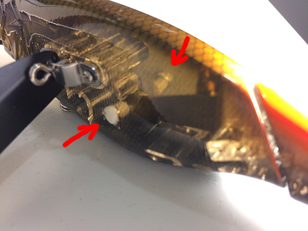 (※その後、羽根受け金具前方のヒートンが小さくなり、羽根が十分に閉じるように改善されました。新しいアイウィング135はこのチューンをする必要がなくなりました)