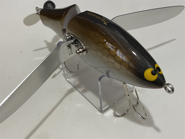 尻にペラが付いていてジョイントボディの縦扁平シェイプ。アクションに安定感があります。水面に波があるような状況でもアクションが安定していてスポイルしにくいです。縦扁平ボディを揺らすことでその波動アピールは強めです。